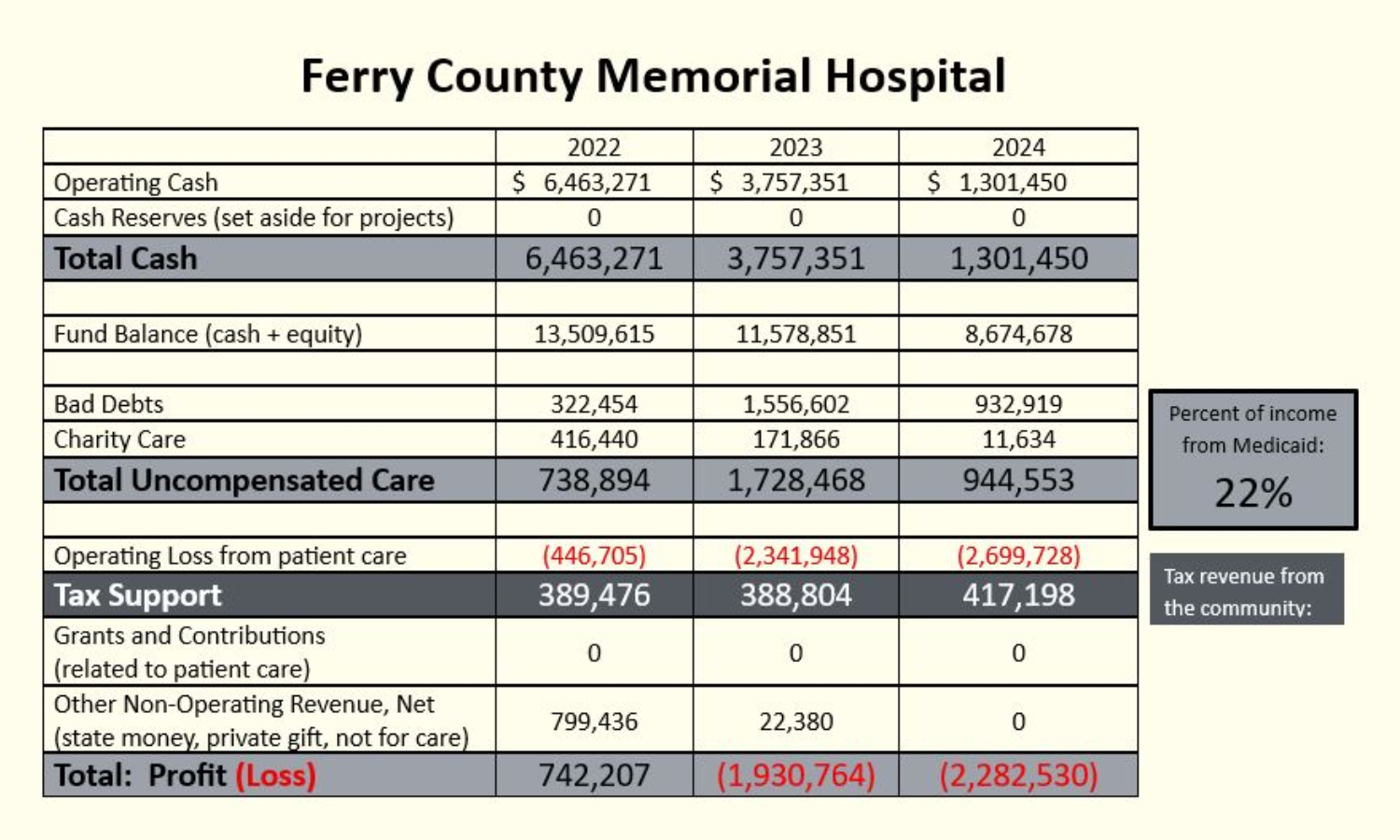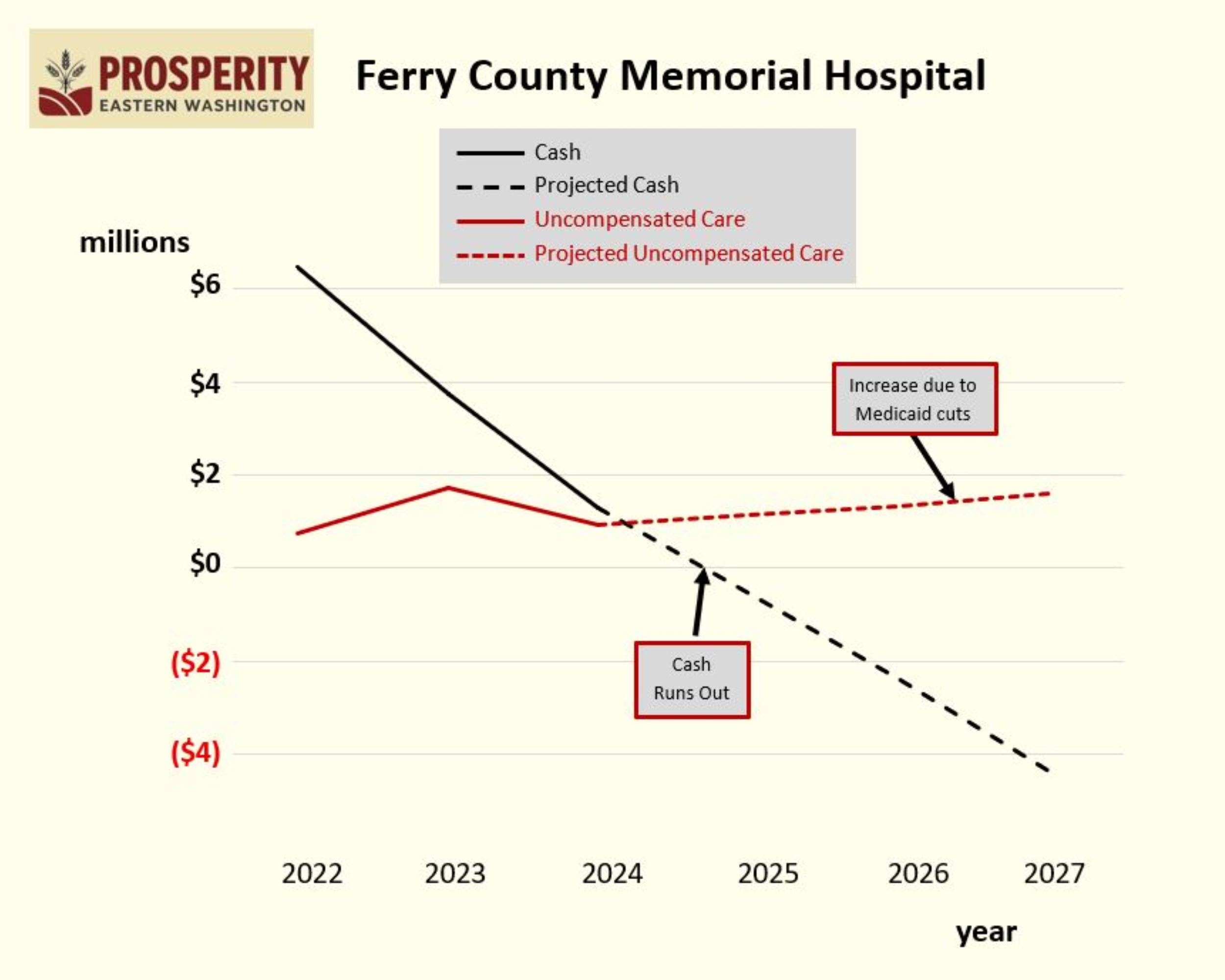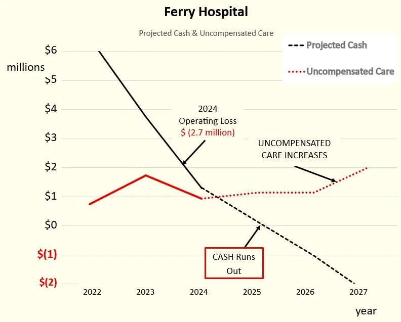Without financial support, this graph shows that Ferry Hospital will be in the red in 2025.