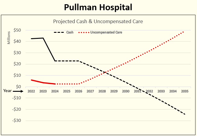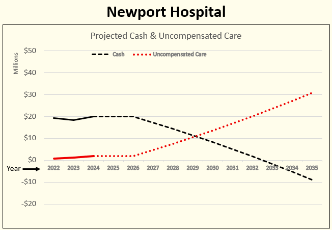 Projected Cash: The estimated amount of money a hospital will have in the future. (based on predictions due to loss of patient insurance)